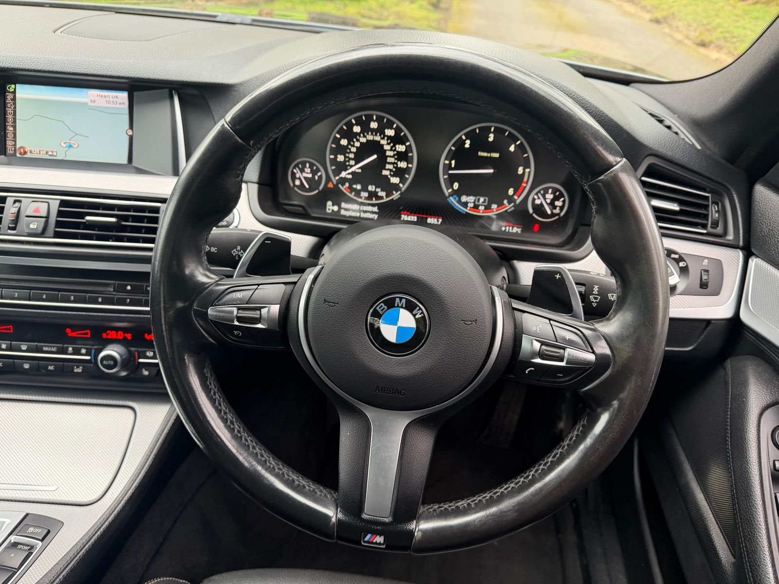 This 2015 BMW 5 Series 535d M Sport presents a good ownership proposition with its low mileage of just 76,000 miles and a clear vehicle history check and a good service history. This Euro 6 compliant model, featuring a powerful 3.0L diesel engine and M Sport trim ensures a dynamic driving experience, complemented by notable features such as automatically dimming and folding exterior mirrors, a speed limit display, and automatic air conditioning with climate control. For convenience and safety, it includes Xenon headlights and rear Park Distance Control, making parking straightforward. The impressive acceleration of 0-62mph in just 5.3 seconds highlights the potent performance of this 535d M Sport, setting it apart from many other vehicles in its class. Beyond its speed, the generous boot space offers practicality for everyday needs and longer journeys. This BMW 5 Series combines its strong performance and luxury M Sport appointments with excellent provenance, making it a compelling choice for those seeking a well maintained and capable executive saloon.